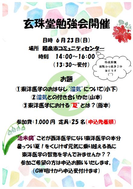 前回は当院の待合室で開催しましたが、今回は当院から歩いて徒歩2分程のところにある和泉市コミュニティーセンターで開催致します!
