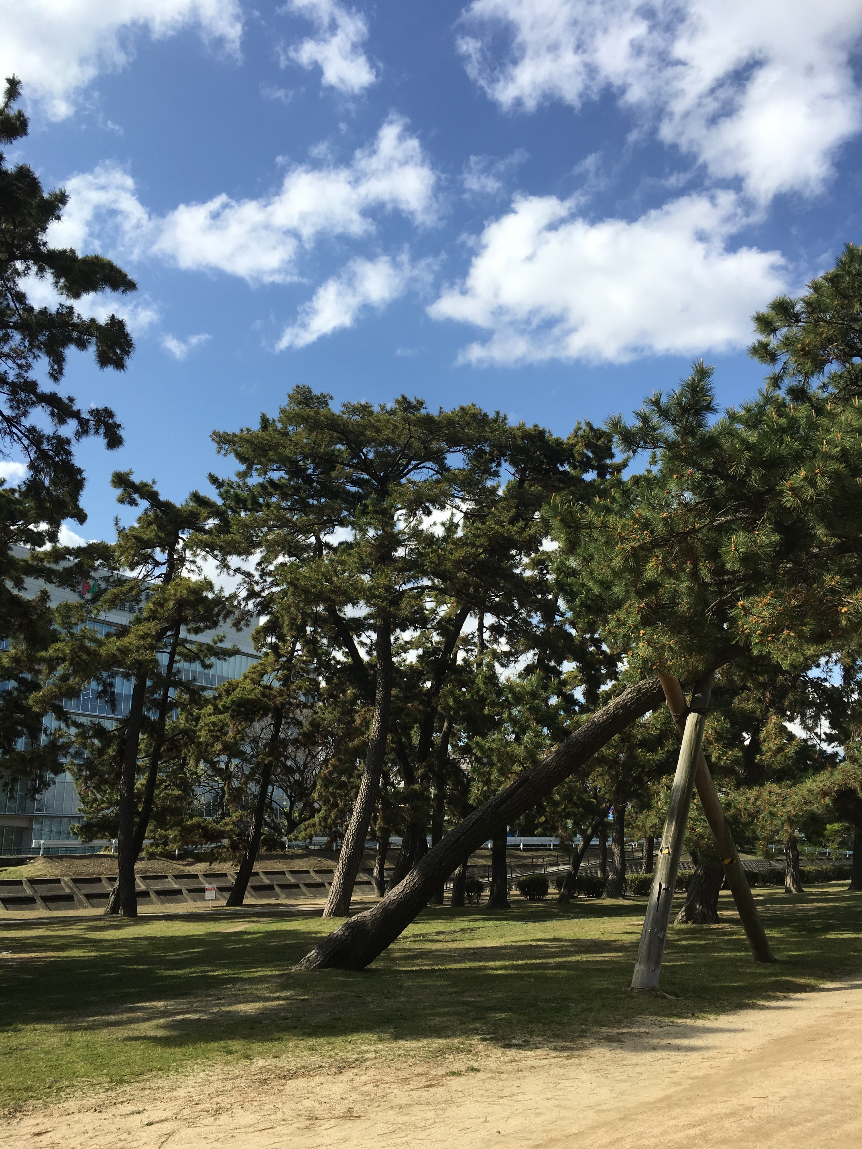 河川敷に立つ松の木は、ますます力強く伸びています。