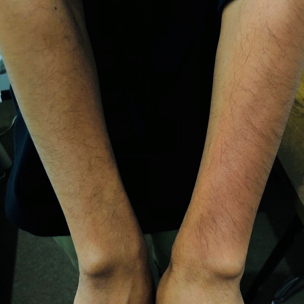 処置をしてもらった右腕は、赤みがひいたのです!!!