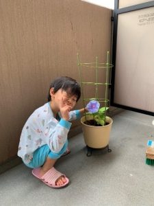 最近、小1の息子が朝顔を育てています。