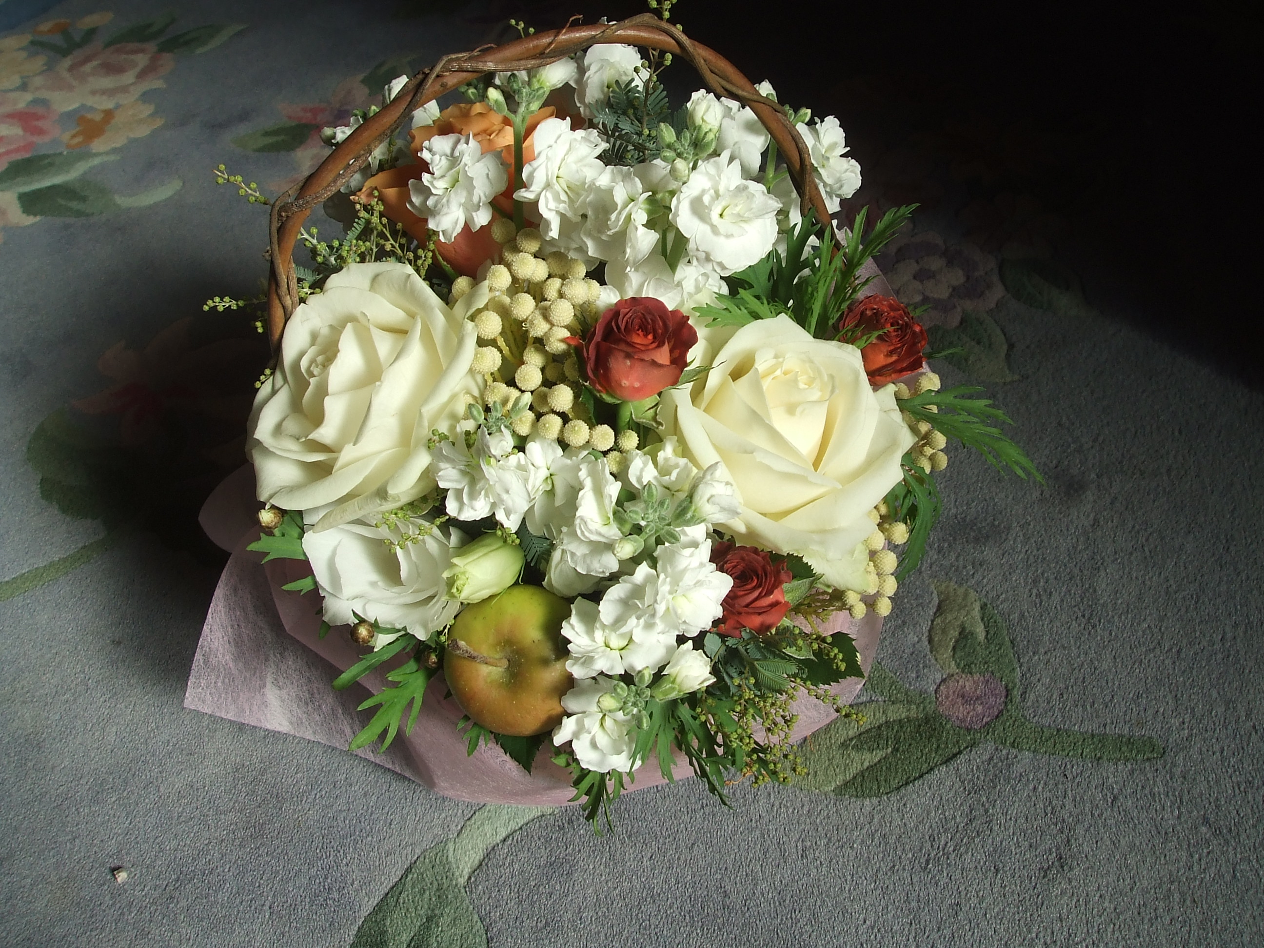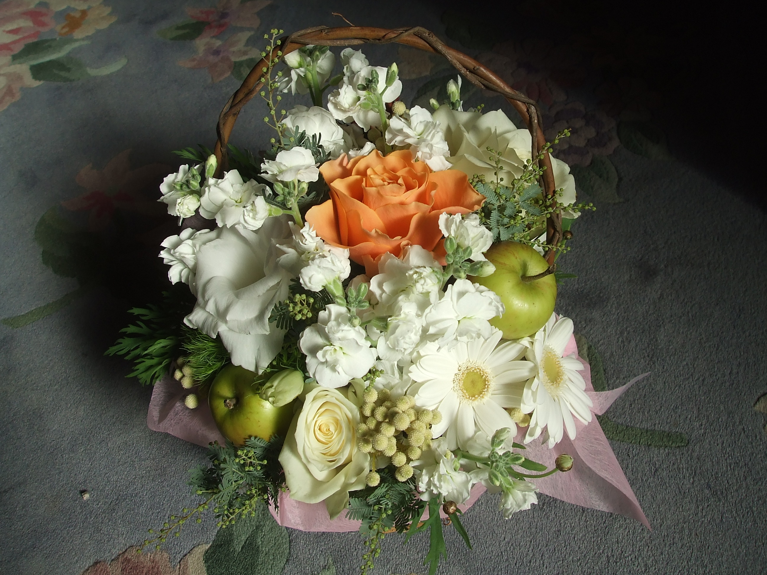 ・バラ・ガーベラ・ヒメリンゴ です((ヾ(o´ω`o)b
