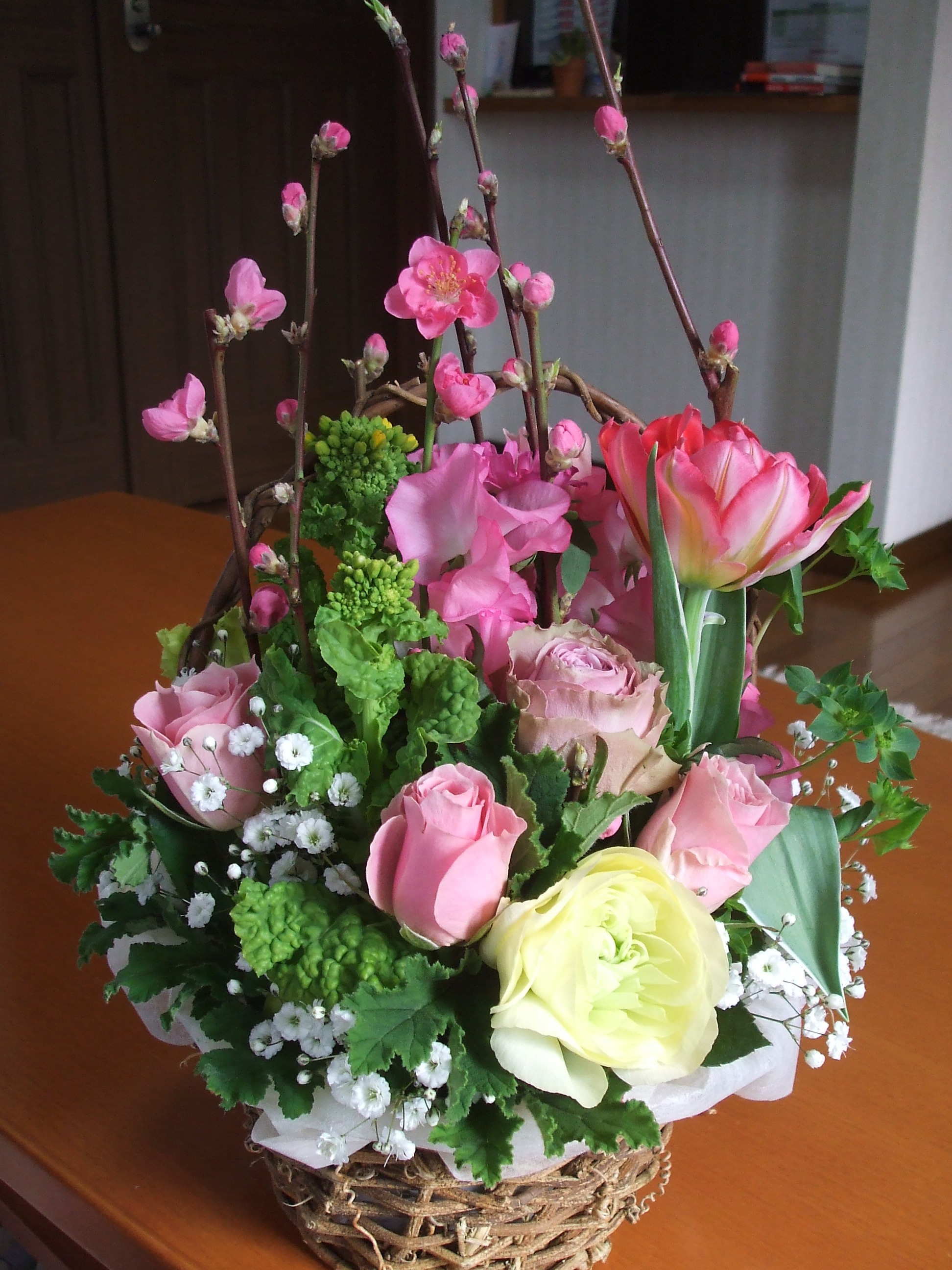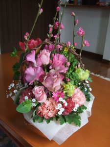 アスター・トルコキキョウ・桃の花・かすみ草・スイートピー