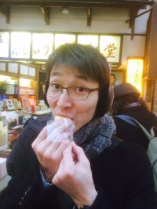 温泉まんじゅうを食べ