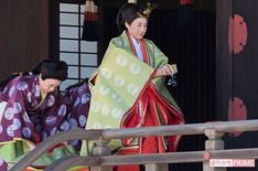 十二単(ひとえ)を身に着けられた皇后雅子さま(宮内庁提供)