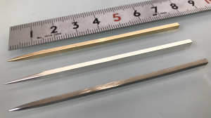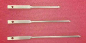 見た目には古代鍼を太く、先をマイルドに、鍼柄の四角形を強調し、穴をあけた・・・