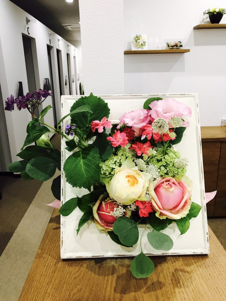 あじさい、バラ、トルコキキョウ、スプレーカーネーション、アストランチャマヨール、ビバーナム