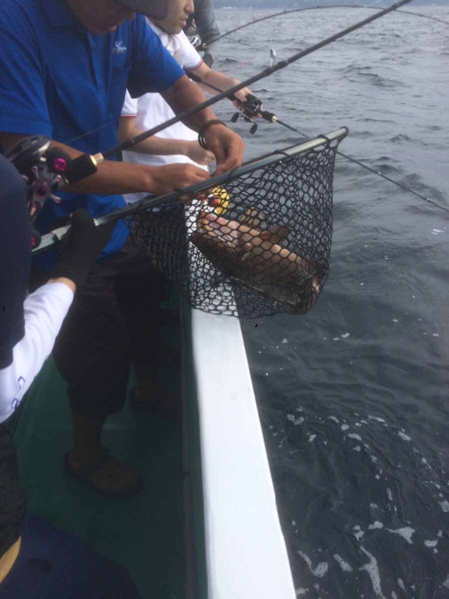 こんな感じで戦意喪失してたんですけど、、、最後の最後にまぁまぁいいサイズのアカハタが1匹釣れました!私一人だけ釣れてなくて、船長さんもとても心配されてたので、、1匹でも釣れて本当に良かったです(笑)