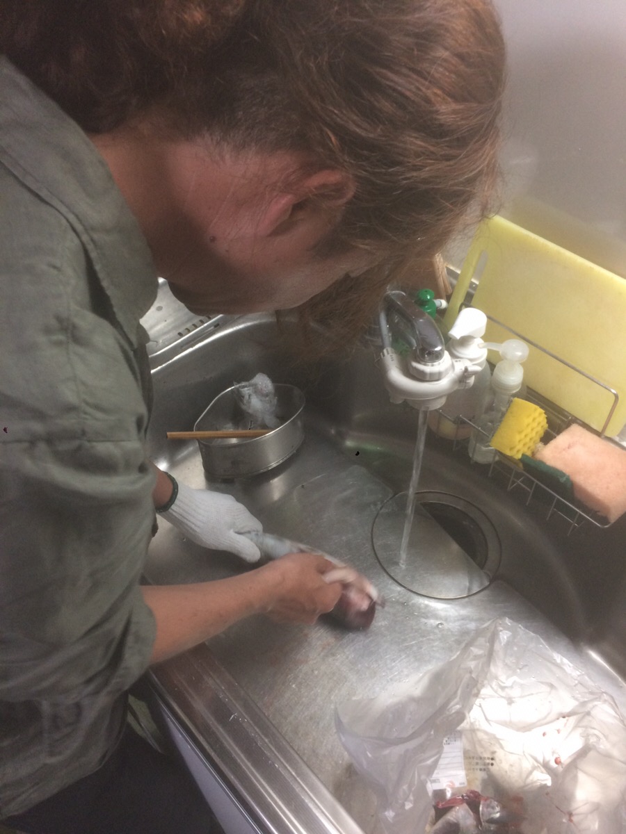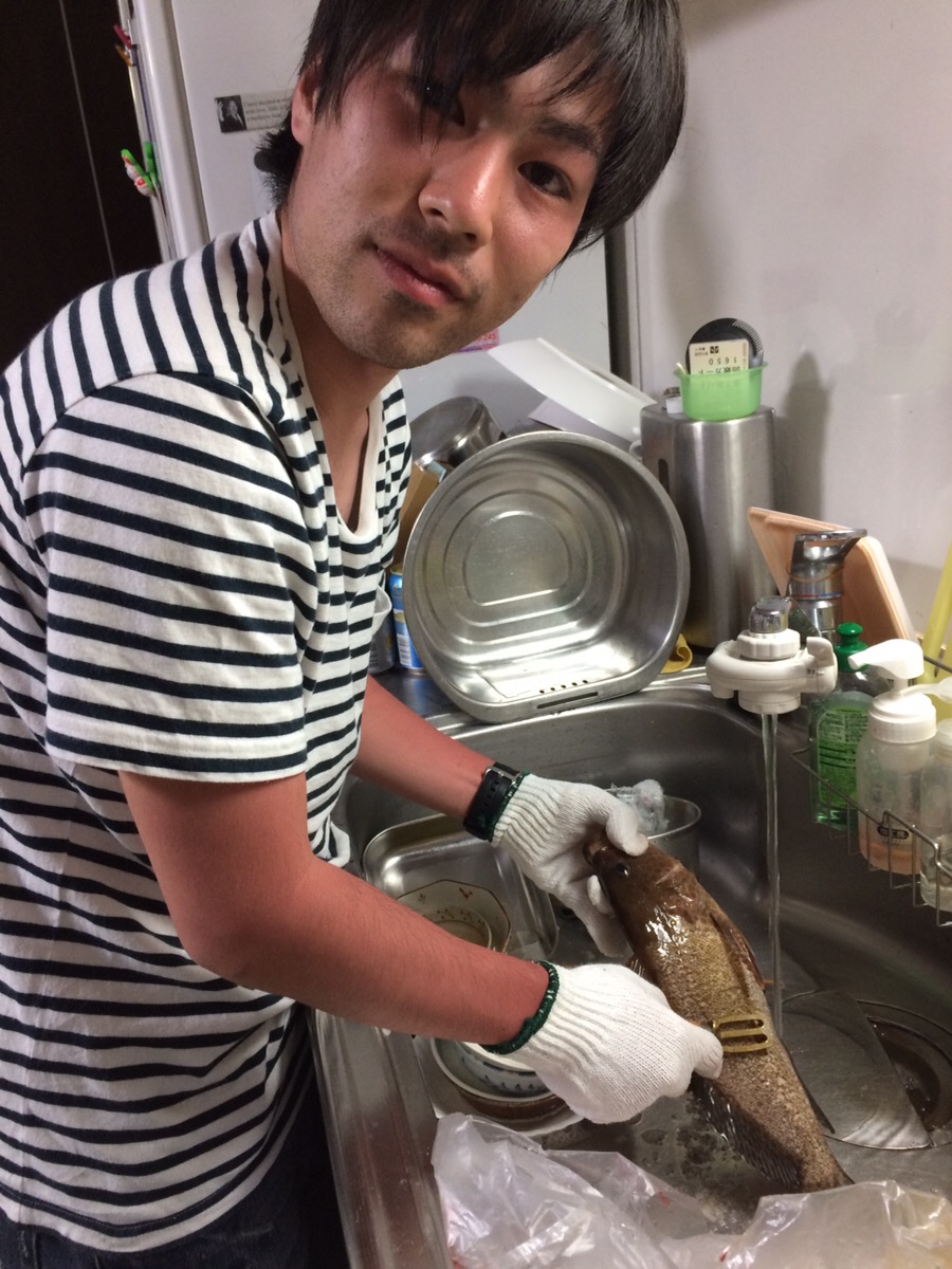 院長のお宅にお邪魔して、院長の奥様に魚を捌いてもらいました!奥様、いつも院長が釣ってきた魚を捌いているだけあって、腕前はプロ級!ちなみに奥様は魚があまりお好きではないようで、魚は捌くだけで一切食べないそうです(笑)