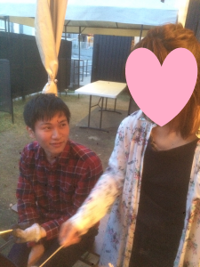 BBQに参加していた可愛い女性をみつめる月曜日スタッフの山本先生。これは完全に惚れてますね(笑)