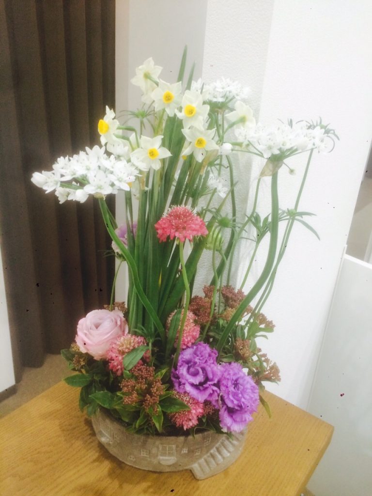 水仙 アリウム スカビオサ バラ トルコキキョウ ガマズミ