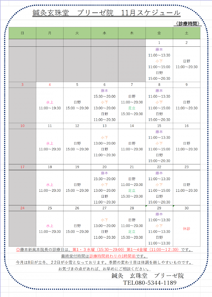 ブリーゼ院 11月スケジュール