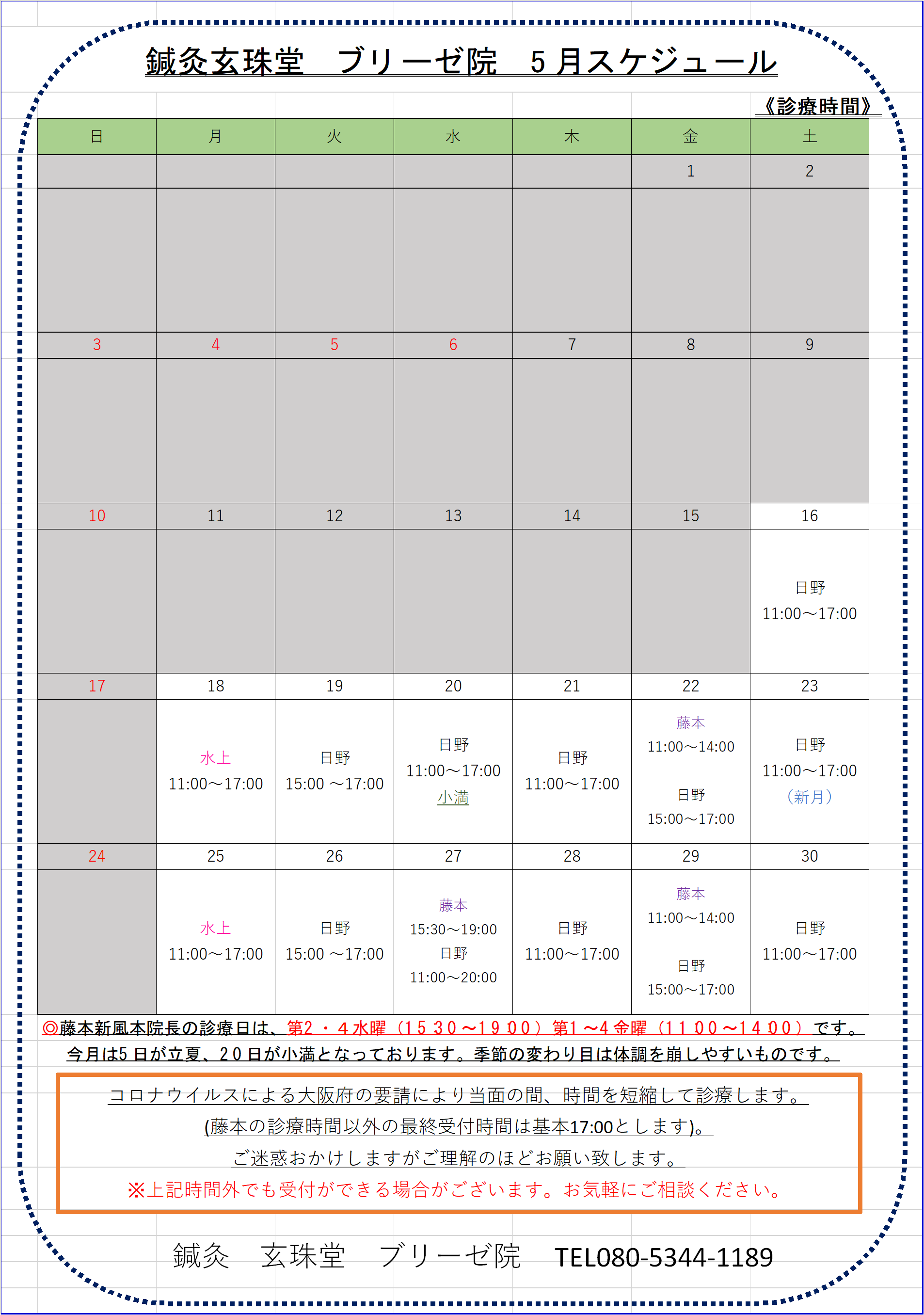 • » ブリーゼ院 5月スケジュール