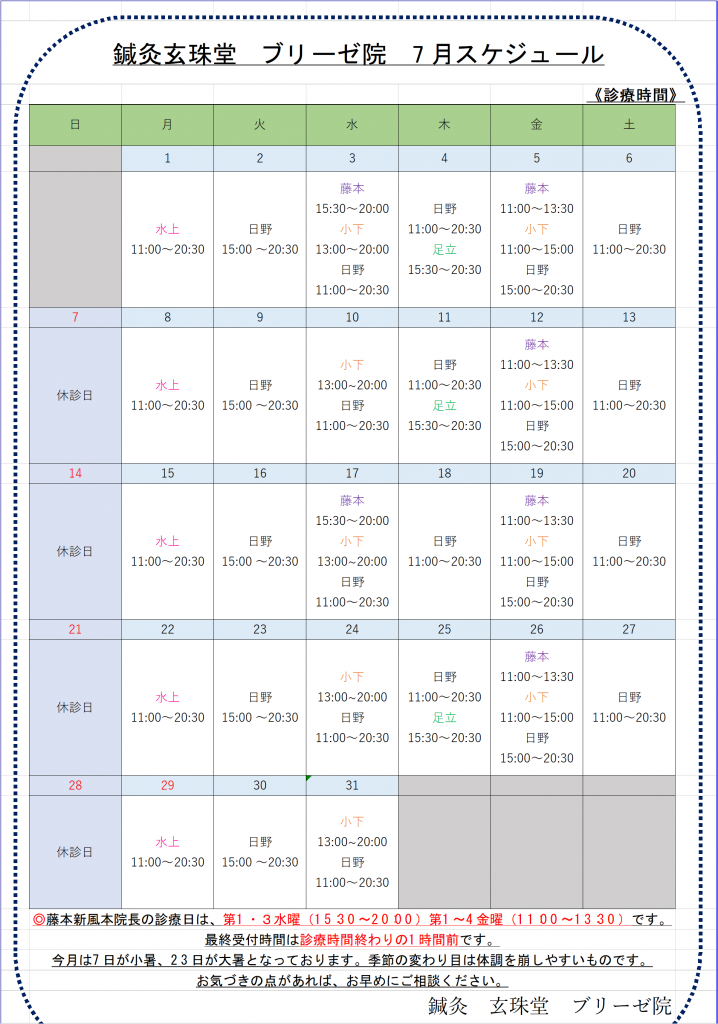本院 7月スケジュール