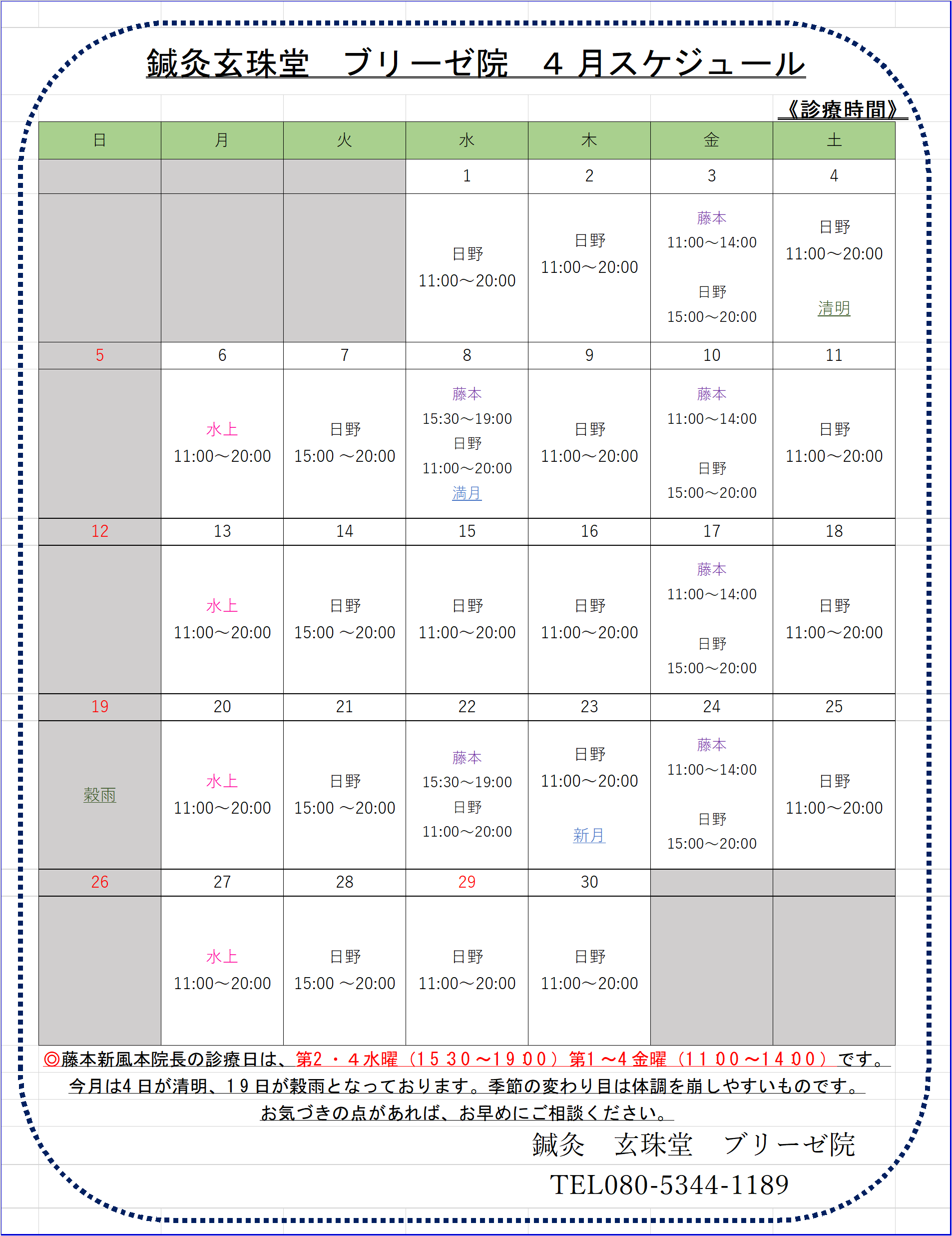 本院 4月スケジュール →
