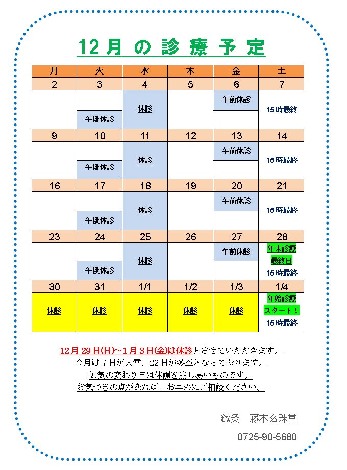 本院 12月スケジュール