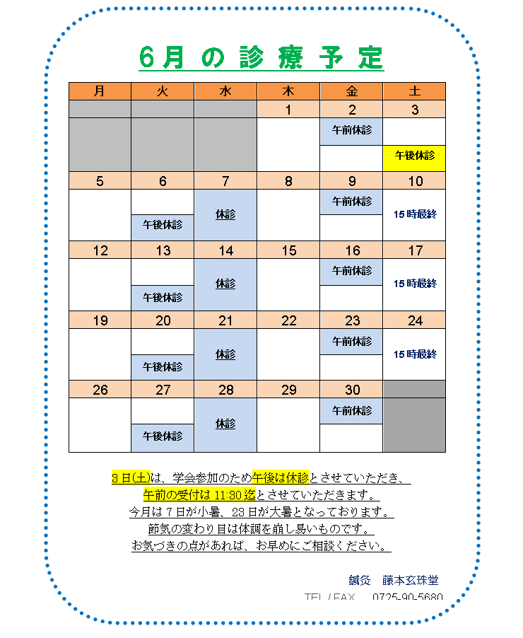 本院 6月スケジュール
