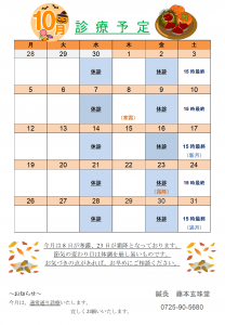 本院 10月スケジュール