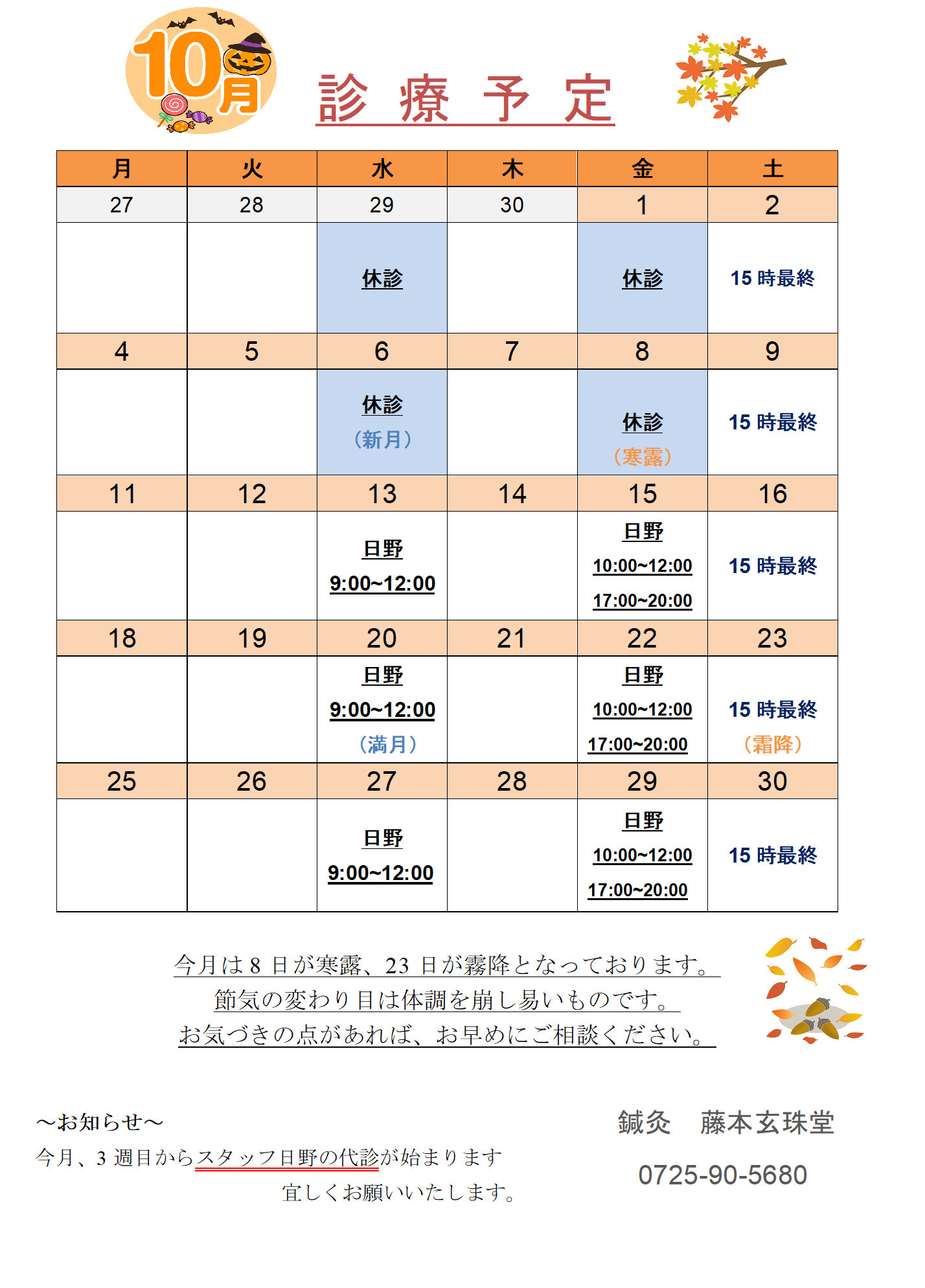 本院 10月スケジュール