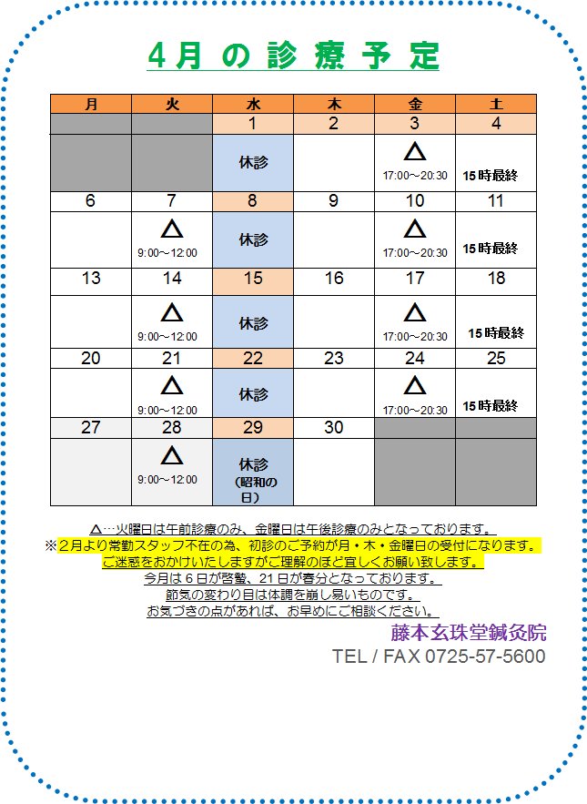 今月はカレンダー通りのスケジュールです。