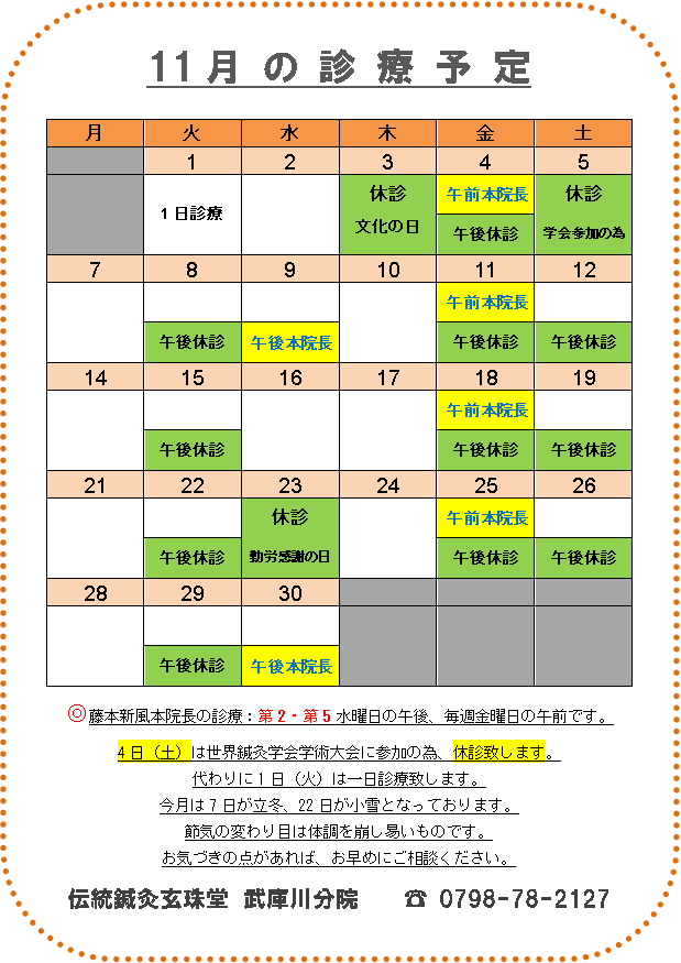 » 武庫川分院 11月スケジュール