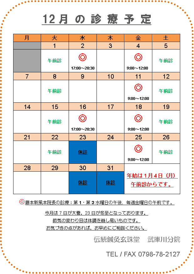 » 武庫川分院 12月スケジュール