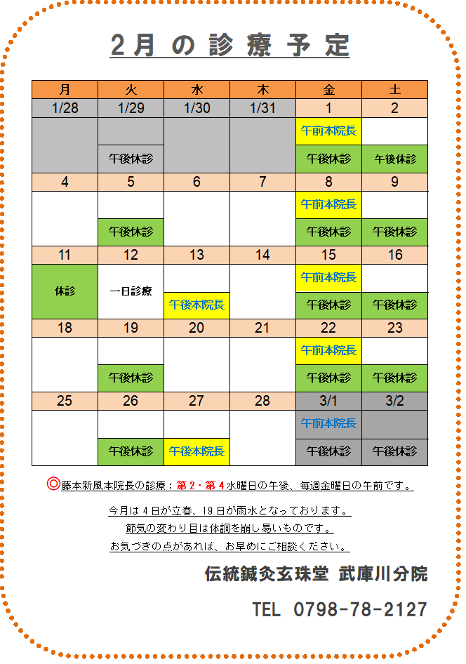 武庫川分院 2月スケジュール